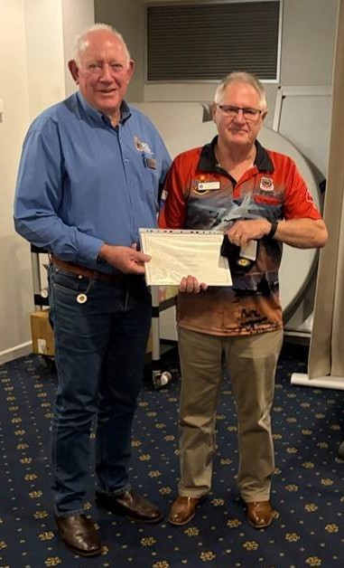 Above: L-R John Robinson OAM Vice President of South Eastern District presents Gary with his Life Member Award.