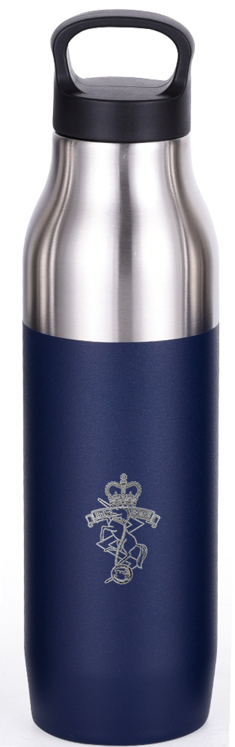 Navy Blue insulated stainless steel drink bottle with Corps badge laser engraved on the side.